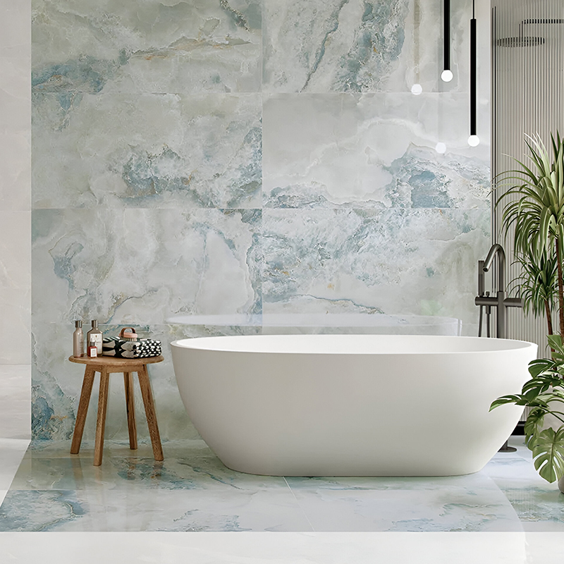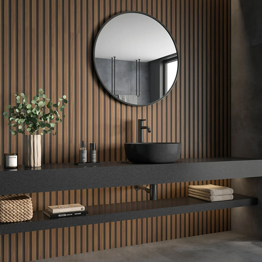 With our large format porcelain tiles, you have your choice of material-effect, making it easy to create a simple yet refined feature wall for any bathroom. While they of course lend themselves to bigger spaces, don’t shy away from using large tiles if your bathroom is small, as having fewer grout lines helps to provide a seamless look, which in turn can add give the illusion of a wider expanse of space.