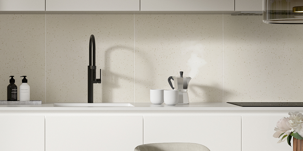 For a bold and eye-catching splashback alternative that’s also highly durable, we’d highly recommend considering porcelain terrazzo tiles. Whether your kitchen is colourful, neutral, dark, or light, a terrazzo tiled splashback can add a playful, eye-catching element to any kitchen that feels undeniably on-trend.
