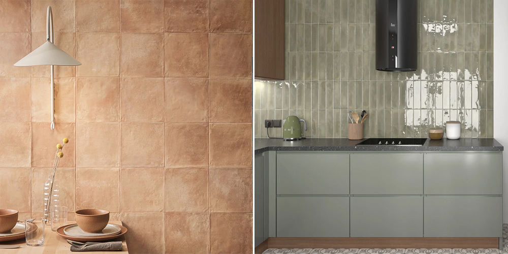 Left: Terracotta Light Porcelain Tiles, Right: Marlborough Green Metro Tiles