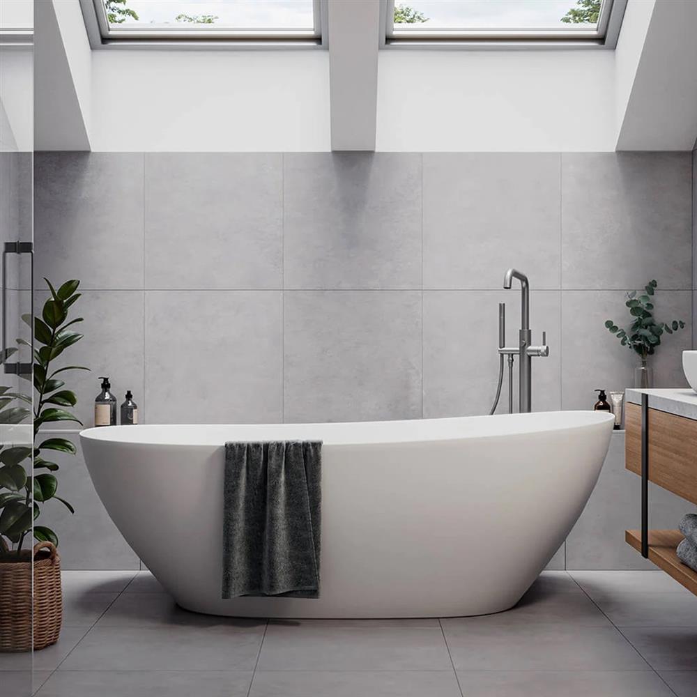 With loft spaces typically having smaller square footage with lower ceilings, lighter neutral colours will ensure your bathroom remains bright and airy. Shades such as soft whites, beige, and pale grey porcelain tiles can help to open up the room, helping to maximise the sense of space.