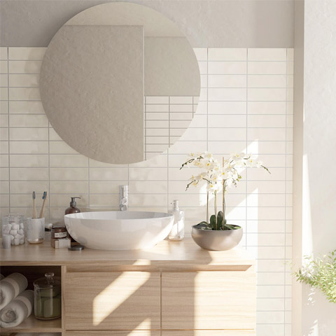 The surface finish of a tile can also help to create an open and bright ambiance: opt for a gloss or satin finish to keep the natural light bouncing around the room.