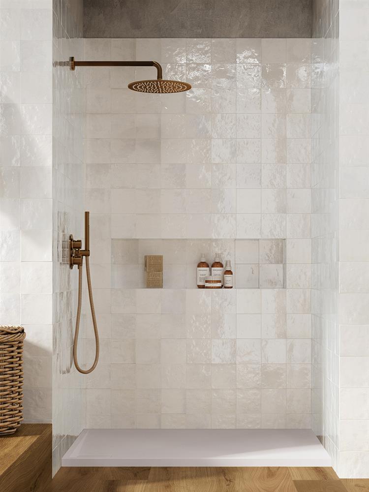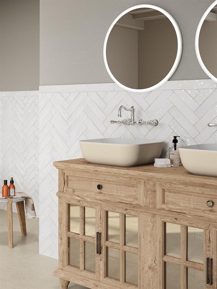Choosing white tiles with imperfections and artisanal character is a great way to achieve a rustic Mediterranean look in your bathroom. Our ceramic and porcelain zellige tiles replicate the beauty of handmade tiles, in a more durable and lower-cost alternative.
