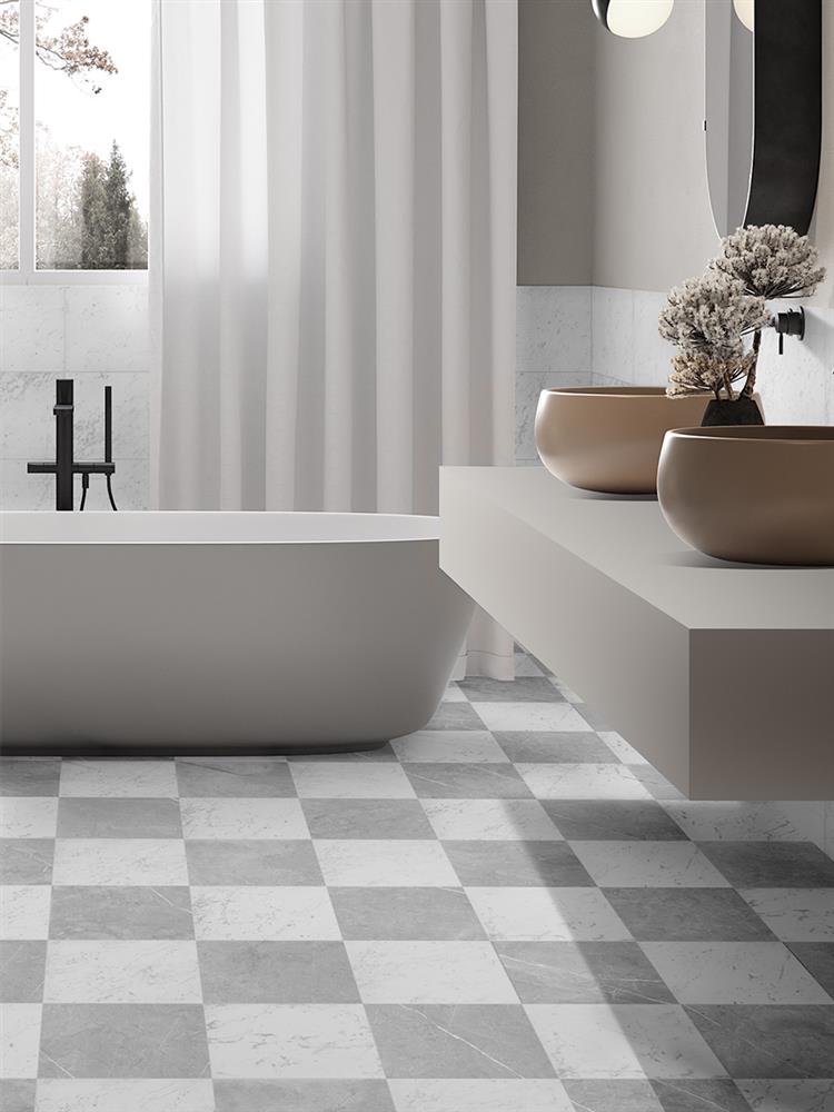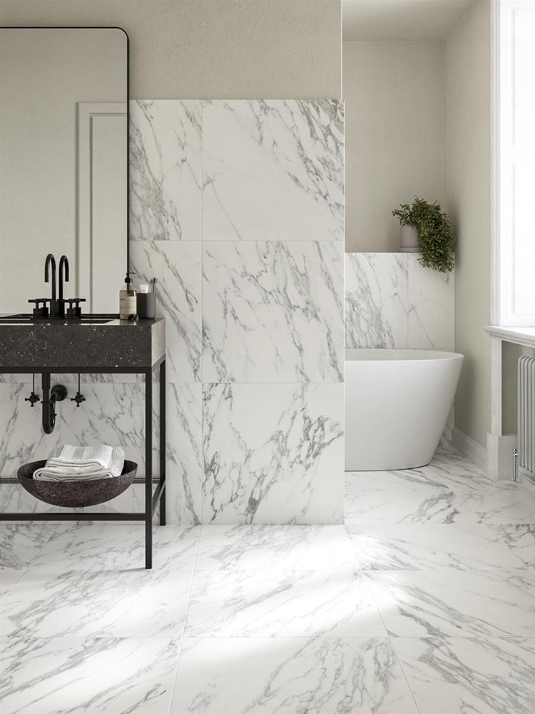 Firenza Carrara White & Firenza Carrara Soft Grey Marble-effect Tiles