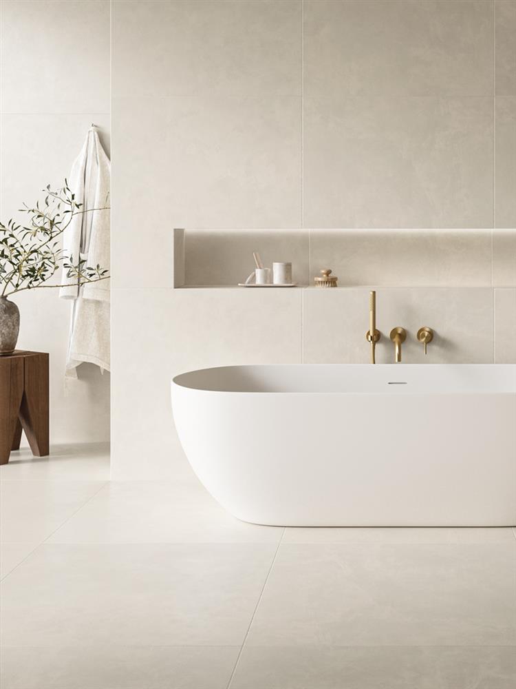 Yearning for a spa-like bathroom? The at-home spa look can easily be achieved with our beautiful Serenity microcement effect tile range. These tiles embody softness, with a calm and natural warmth which are all essential in designing a space that relaxes both the body and mind.