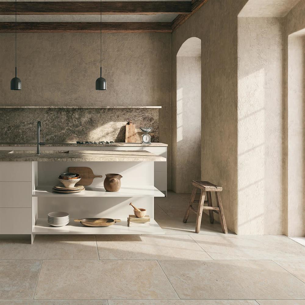 For those looking to achieve the perfect country kitchen, beige natural stone or stone-effect porcelain tiles are a must-have. With their soft, tumbled edges and authentic, natural details, these tiles evoke the charm of a rustic farmhouse while offering the much-needed durability and practicality of a modern home.