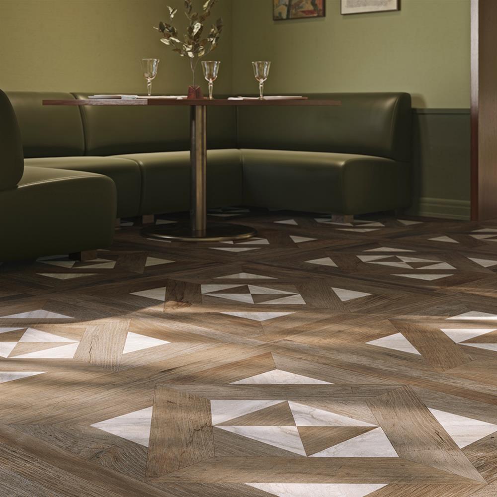 And for those seeking a softer look than stone, porcelain wood-effect tiles also capture this design movement perfectly within kitchen floor tile trends, capturing the opulence of traditional timber parquet slabs with the added durability and low maintenance of modern porcelain.